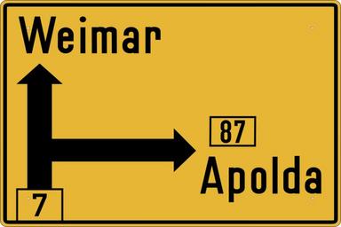 Keywords: Bild 54 a - Vorwegweiser zu Straßenkreuzungen und Abzweigungen, StVO DDR 1964.svg de Bild 54 a Vorwegweiser zu Straßenkreuzungen und Abzweigungen StVO DDR 1964 Verkehrszeichen der Deutschen Demokratischen Republik nach der Straßenverkehrsordnung StVO von 1964 <br /> Die Ausführung dieses Schildes richtet sich nach den im April 1967 bekanntgegebenen Normen TGL 10629 Blatt 2 Leiteinrichtungen für den Straßenverkehr “ Verkehrszeichen “ Schilder und TGL 10629 Blatt 3 Leiteinrichtungen für den Straßenverkehr “ Verkehrszeichen “ Symbole Farbe Schrift Die Farbgrenzen werden deffiniert nach der im Februar 1967 bekanntgegebenen Norm TGL 20684 Blatt 6 Signallichter “ Farben und Farbgrenzen im Verkehrs “ Ortsfeste Signallichter im Straßenverkehr Alle zwei genannten Normen wurden am 01 01 1968 verbindlich TGL 20684 Blatt 6 war ein Ersatz für die ältere Norm TGL 06163 vom November 1962 die bei Einführung der StVO von 1964 galt Damals hatte es noch keine durch die CIE-Normfarbtafel festgelegten Farbgrenzen gegeben Die normierten Bohrlöcher im Schild nach TGL 10629 Tabelle 2 sind behördlich vorgeschrieben und daher unverzichtbarer Bestandteil bei diesen Verkehrszeichen und werden somit in der Abbildung wiedergegeben Anwendung fand bei der Einführung dieser StVO noch die Typfarbkarte 5/62 und ab dem 01 10 1969 die verbindlich eingeführte Farbkarte nach TGL 21196 TGL 21196 vom Januar 1969 Anstrichstoffe “ Farbregister Typfarbkarte 5/62 Rot 3000 RAL-Farbtonregister 840 R 3000 TGL 21196 1969 0605 žSignalrot Lab L 44 78 a 50 80 b 26 62 Zur CIELab-Umwandlung siehe TGL 21196 Juni 1987 Anstrichstoffe “ Farbregister “ Vorzugsfarben own Mediatus 03 März 2016 Herstellungsdatum other fields + Signs User Mediatus/no-new-version Cc-zero PD-Vz historisch SVG road signs in East Germany 54a svg Diagrams of direction road signs of East Germany 1964 set 54a |