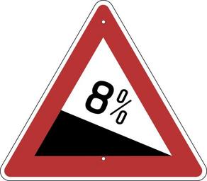 Keywords: Bild 5 - Starkes Gefälle, StVO DDR 1965.svg de Bild 5 Starkes Gefälle StVO DDR 1964 Verkehrszeichen der Deutschen Demokratischen Republik nach der Straßenverkehrsordnung StVO von 1964 Größe nach TGL 10629 Tabelle 2 700 bzw 1100 mm Kantenlänge <br /> Die Ausführung dieses Schildes richtet sich nach den im April 1967 bekanntgegebenen Normen TGL 10629 Blatt 2 Leiteinrichtungen für den Straßenverkehr “ Verkehrszeichen “ Schilder und TGL 10629 Blatt 3 Leiteinrichtungen für den Straßenverkehr “ Verkehrszeichen “ Symbole Farbe Schrift Die Farbgrenzen werden deffiniert nach der im Februar 1967 bekanntgegebenen Norm TGL 20684 Blatt 6 Signallichter “ Farben und Farbgrenzen im Verkehrs “ Ortsfeste Signallichter im Straßenverkehr Alle zwei genannten Normen wurden am 01 01 1968 verbindlich TGL 20684 Blatt 6 war ein Ersatz für die ältere Norm TGL 06163 vom November 1962 die bei Einführung der StVO von 1964 galt Damals hatte es noch keine durch die CIE-Normfarbtafel festgelegten Farbgrenzen gegeben Die normierten Bohrlöcher im Schild nach TGL 10629 Tabelle 2 sind behördlich vorgeschrieben und daher unverzichtbarer Bestandteil bei diesen Verkehrszeichen und werden somit in der Abbildung wiedergegeben Anwendung fand bei der Einführung dieser StVO noch die Typfarbkarte 5/62 und ab dem 01 10 1969 die verbindlich eingeführte Farbkarte nach TGL 21196 TGL 21196 vom Januar 1969 Anstrichstoffe “ Farbregister Typfarbkarte 5/62 Rot 3000 RAL-Farbtonregister 840 R 3000 TGL 21196 1969 0605 žSignalrot Lab L 44 78 a 50 80 b 26 62 Zur CIELab-Umwandlung siehe TGL 21196 Juni 1987 Anstrichstoffe “ Farbregister “ Vorzugsfarben own Mediatus 25 Februar 2016 Herstellungsdatum + Signs User Mediatus/no-new-version Cc-zero SVG road signs in East Germany 05 svg Diagrams of danger warning road signs of East Germany 1964 set 05 svg Diagrams of danger warning road signs of East Germany 1971 set 05 svg Triangular warning road signs of East Germany 05 svg Slope signs in East Germany 05 svg 8 angle 05 svg 8 number 05 svg |