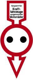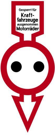 Keywords: Bild 60 - Gesperrt für Kraftfahrzeuge, ausgenommen Motorräder, StVO 1937.SVG de Bild 60 Gesperrt für Kraftfahrzeuge ausgenommen Motorräder Verkehrszeichen nach dem Reichsgesetzblatt 123 vom 16 November 1937 S 1212 Auch identisch in R Allmers R Kaufmann C Fritz E Kleinrath E H Pflug Hrsg Das deutsche Automobilwesen der Gegenwart Reimar Hobbing Berlin 1928 S 219 Die Typographie wurde von einem historischen Vorbild übernommen Die Bemaßung entspricht den damaligen Vorgaben Das Schild war insgesamt 1200 mm hoch Der Kreisdurchmesser hatte 500 mm der der dort einzusetzenden Punkte 100 mm Der Pfeil war oben und an den Pfeilenden 300 mm breit seine Umrandung war mit 40 mm etwas schmäler als die des Kreises own selbst gezeichnet von Mediatus Mediatus 26 Dezember 2013 Herstellungsdatum Cc-zero PD-VzKat German language signs Diagrams of historic road signs of Germany 1929 set Diagrams of miscellaneous road signs of Germany 1934 set Diagrams of deprecated road signs of Germany 1938 set 60 SVG road signs in Germany |