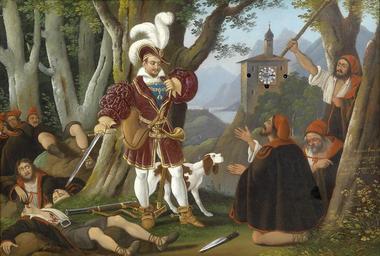 Keywords: Bilderuhr Maximilian I mit den Räubern.jpg oil metal 91 x 67 cm http //www dorotheum com 1840 Creator Anonymous PD-Art-100 Maximilian I Holy Roman Emperor 1840s paintings Brigands Feathered headdresses in art male Paintings with inscriptions 19th-century paintings location missing Images from Dorotheum Picture clocks |