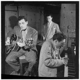 | Keywords: Bill De Arango, Terry Gibbs, and Harry Biss, Three Deuces, New York, N.Y., ca. June 1947 (William P. Gottlieb 01901).jpg en Bill De Arango Terry Gibbs and Harry Biss THree Deuces NYC ca June 1947 Photography by William P Gottlieb http //lcweb2 loc gov/diglib/ihas/loc natlib gottlieb 01901/enlarge html page 1 section ver01 size 1024 from Creator William P Gottlieb PD-Gottlieb Photographs by William P Gottlieb Black and white photographs of the United States in the 1940s Jazz guitarists Terry Gibbs |