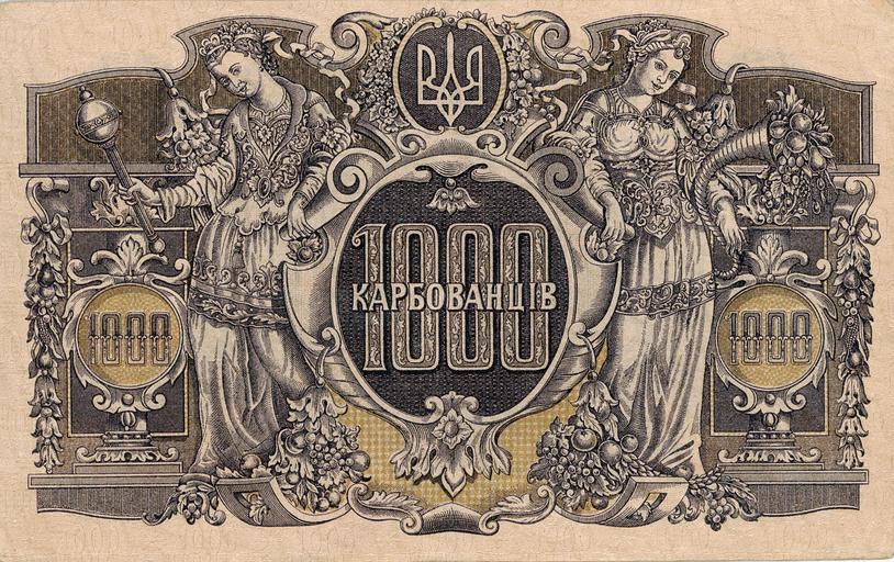 Keywords: Billet russe.jpg billet de banque ukrainien 1919 Averse Anverso de billete ucraniano de 1000 Karbovanets de 1919 Ukrainian banknote of 1000 karbovanets from 1919 Collection privé de Trisku scan 1919/2007 trisku 15 53 5 September 2007 UTC Domaine public Has Ukranian symbol near top center Copyrighted free use PD-old Banknotes with a face value of 1000 Banknotes of Ukraine 1918 1000 |
