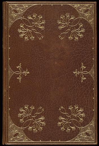 Keywords: bookbinding historic antique book binding photo border texture text A honeysuckle design is the main feature of this brown goatskin binding, with dots and leaves filling the corners. The leaf design is continued on the spine. The edges and turn-ins are also gold tooled. The upper turn-in is stamped: Morrell binder. The bookbinding firm Morrell was originally founded by W.T. Morrell in 1861 when he acquired the workshop of Charles Lewis at 17 Frith Street, Soho, London. Morrell’s son W.J. Morrell took over the management in 1887 after his father’s death, and subsequently brought his brother John Morrell into partnership. In 1891 an observer noted that W.J. & J. Morrell, at that time employing 50 people, preferred to bind all their work by hand and the gilding and the marbling of both paper and leathers was also done onsite. A speciality for which they were known were bindings in the Roger Payne style, although this firm was also known for their own creative designs. Purchased by Alexander H. Turnbull in 1907 from Bernard Quaritch. Upper cover of Algernon Charles Swinburne, Laus veneris (London: Edward Moxon & Co., 1866 [i.e. ca. 1890]). REng SWIN Laus 1866. A honeysuckle design is the main feature of this brown goatskin binding, with dots and leaves filling the corners. The leaf design is continued on the spine. The edges and turn-ins are also gold tooled. The upper turn-in is stamped: Morrell binder. The bookbinding firm Morrell was originally founded by W.T. Morrell in 1861 when he acquired the workshop of Charles Lewis at 17 Frith Street, Soho, London. Morrell’s son W.J. Morrell took over the management in 1887 after his father’s death, and subsequently brought his brother John Morrell into partnership. In 1891 an observer noted that W.J. & J. Morrell, at that time employing 50 people, preferred to bind all their work by hand and the gilding and the marbling of both paper and leathers was also done onsite. A speciality for which they were known were bindings in the Roger Payne style, although this firm was also known for their own creative designs. Purchased by Alexander H. Turnbull in 1907 from Bernard Quaritch. Upper cover of Algernon Charles Swinburne, Laus veneris (London: Edward Moxon & Co., 1866 [i.e. ca. 1890]). REng SWIN Laus 1866.