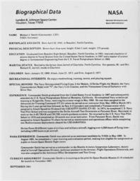 Keywords: Biographical Data, Ellison S. Onizuka - NARA - 198457.tif Scope and content A NASA fact sheet giving basic information on Michael J Smith one of the astronauts killed in the January 1986 space shuttle Challenger explosion General notes 198457 Local identifier President 1981-1989 Reagan White House Office of Records Management 01/20/1981 - 01/20/1989 Ronald Reagan Library NLRR 40 Presidential Drive Simi Valley CA 93065-0600 Record group Collection RR-WHORM White House Office of Records Management File Systems White House Central Files 01/20/1981 - 01/20/1989 Record group ARC 1191 White House Office of Records Management WHORM Subject File compiled 01/20/1981 - 01/20/1989 Series ARC 198419 File unit White House Office of Records Managment WHORM Subject File case file OS001 381110 01/28/1986 - 02/05/1986 File unit ARC 198442 Variant control numbers NAIL Control Number NLS-WHORM-SF-PR007PR007 02 366115-366115 3 yes Other versions NARA-cooperation PD-USGov Space Shuttle Challenger disaster |