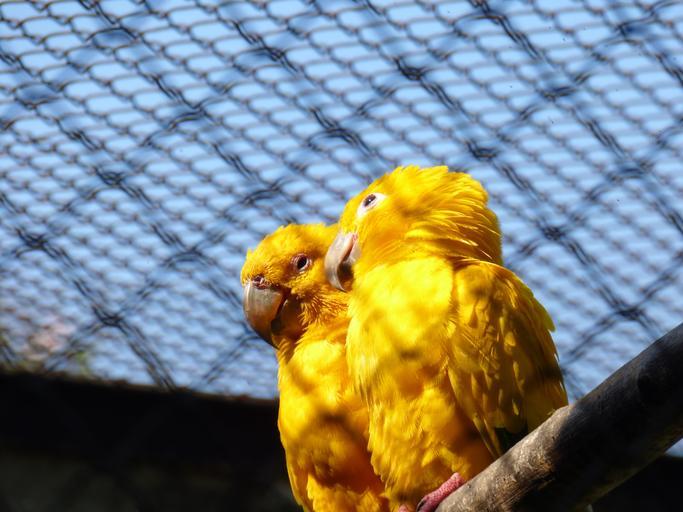 Keywords: bird animal birds nature animal world arara life yellow puppy prey zoo forest yellow birds tropical birds fly birds kissing