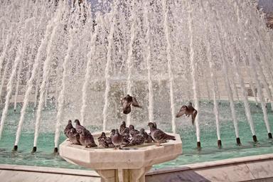 Keywords: bird bath pigeons fountain birds swim istanbul turkey animals