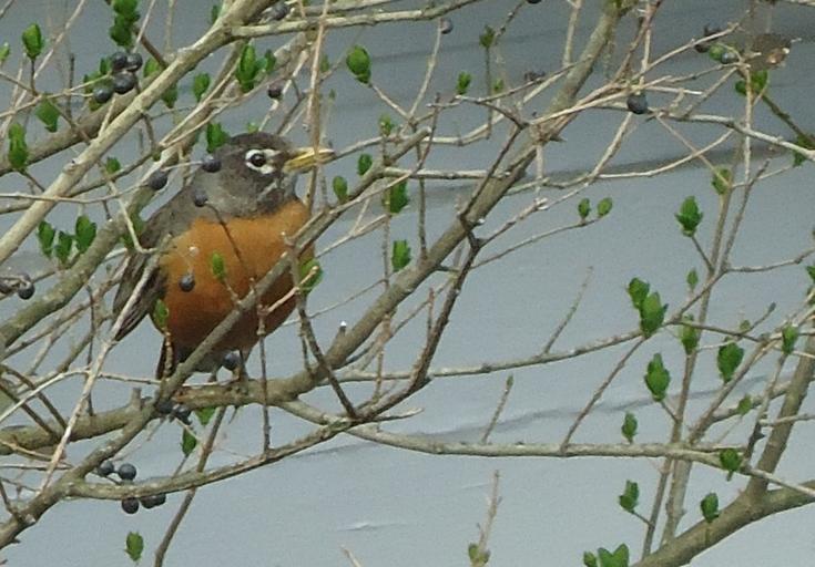 Keywords: Bird in a bush in April in New Jersey.JPG en Bird in a bush probably a robin in New Jersey in April 2013-04-13 22 42 57 own Tomwsulcer cc-zero Uploaded with UploadWizard Passeriformes of New Jersey Turdus migratorius