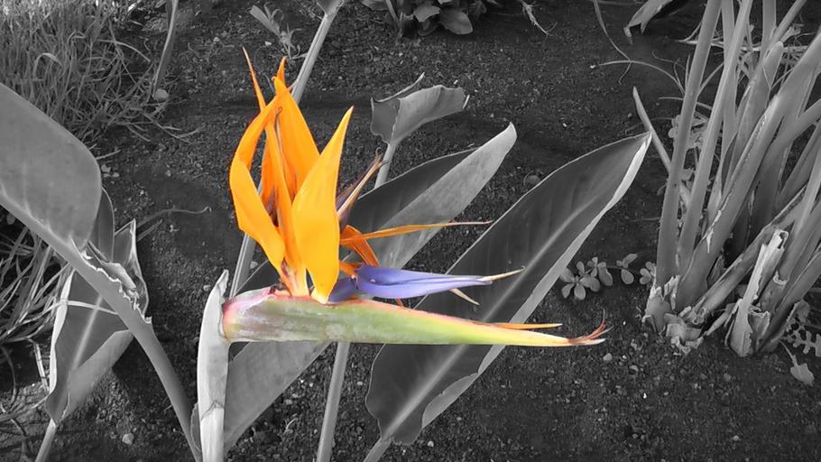 Keywords: bird of paradise flower exotic color plant leaves floral blossom bloom flora strelitzia garden yellow
