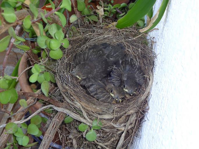 Keywords: bird's nest blackbirds young birds chicks bird black nest