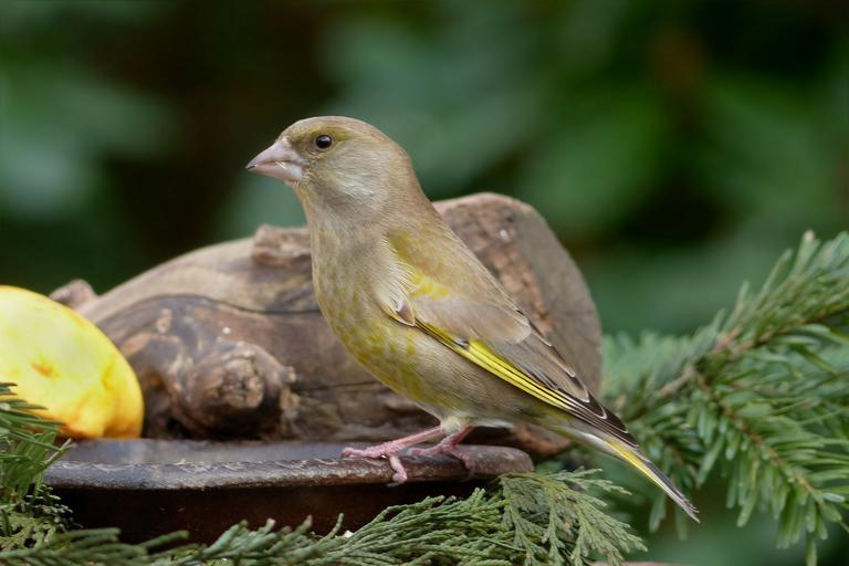 Keywords: bird small greenfinch garden foraging
