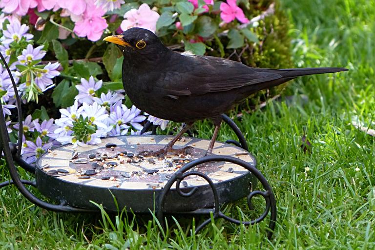 Keywords: bird throttle turdus philomelos male summer garden foraging