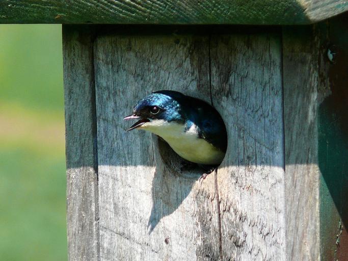 Keywords: bird tree swallow swallow birdhouse wildlife nature perched wood sitting nest