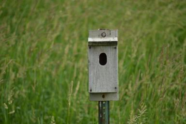 Keywords: birdhouse field nature wooden wood green spring plants meadow