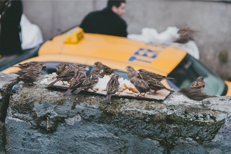 Keywords: birds eating food animals