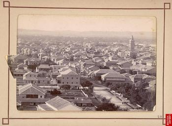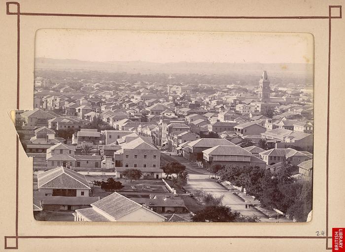 Keywords: Bird's eye view Suddar Bazaar -Karachi in 1890-..jpg Bird's eye view Suddar Bazaar Karachi Photograph with a view of Saddar Bazaar Karachi with the Empress Market in the right background taken by an unknown photographer c 1900 from an album of 46 prints titled 'Karachi Views' Karachi one of the world's largest metropolises was once the capital of Pakistan It is now the capital of the Sindh province in the lower Indus valley and is the financial and commercial centre of Pakistan This huge city was however developed only in the mid-19th century after the British conquest of Sindh Karachi is built around a bay which is a natural harbour protected from storms by a group of small islands Its history prior to the 18th century is sketchy but it is believed to be the ancient port of Krokala on the Arabian Sea visited by Alexander's admirals in 326 BCE The small fishing village was known as Kolachi-jo-Goth in the 18th century and then became a trading post under the Kalhoras and the Talpur rulers of Sindh but the port remained small With the British development of its harbour it grew into the large city of Karachi and an important centre of trade Sadr Bazaars were permanent markets which existed all over the Indian sub-continent they were developed by British forces in the towns they occupied to facilitate the provision of supplies to the troops in the cantonments The Saddar Bazaar at Karachi followed a typical gridiron plan; all the major north-south streets of the Bazaar were laid out at right angles to Bunder Road Frere Somerset and Elphinstone Streets which along with Victoria Road linked the northern part of the cantonment to the southern part The area soon developed into the most fashionable part of the city supplying the needs of both its civilian and military parts http //www collectbritain co uk/ The British Library photo link http //www collectbritain co uk/personalisation/object cfm uid 019PHO000000425U00024000 largeimage 1 largeimage here 1900 Author PD-old PD-UK-unknown Karachi 1890s Pakistan in the 1890s |