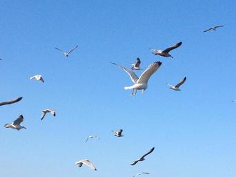 Keywords: birds flying nature flight wings beak flock dove natural air seagull outdoor freedom wild spread seabird soar gliding avian wingspan mid-air birdwatching purity tranquil