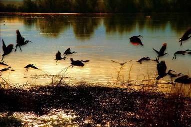 Keywords: birds flying pond sunset nature wildlife landscape reflection silhouette wing lake waterfowl