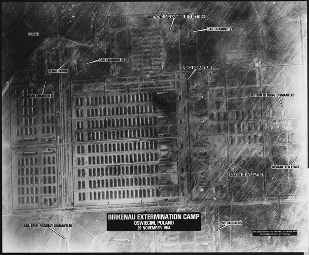 | Keywords: Birkenau Extermination Camp - Oswiecim, Poland - NARA - 305906.tif Scope and content General notes 305906 Local identifier 263-AUSCHWITZ-19 13 National Security Council Central Intelligence Agency Directorate of Intelligence National Photographic Interpretation Center 1961 - 1973 Cartographic and Architectural Records Section Special Media Archives Services Division NWCS-C National Archives at College Park 8601 Adelphi Road College Park MD 20740-6001 1944-11-29 Record group Record Group 263 Records of the Central Intelligence Agency 1894 - 2002 Record group ARC 590 Aerial Photography of Auschwitz Concentration Camp compiled 1973 - 1973 documenting the period 1944 - 1945 Series ARC 305893 File unit File unit ARC Variant control numbers NAIL Control Number NWDNC-263-AUSCHWITZ-19 13 yes Other versions <gallery> File Birkenau_Extermination_Camp_-_Oswiecim _Poland_-_NARA_-_305906 tif tif File Birkenau_Extermination_Camp_-_Oswiecim _Poland_-_NARA_-_305906 jpg jpg </gallery> NARA-cooperation PD-USGov NARA TIF images with categorized JPGs Auschwitz II aerial photographs |