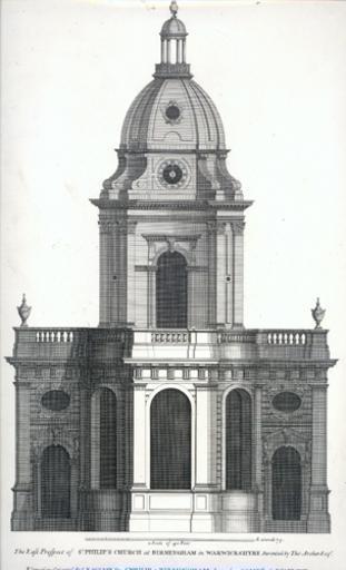 Keywords: Birmingham St Phillip's Vit Brit.jpg The east end of St Philip's Church in Birmingham England now Birmingham's Anglican cathedral from Vitruvius Britannicus c 1725 St Philip's Cathedral Birmingham Vitruvius Britannicus PD-old