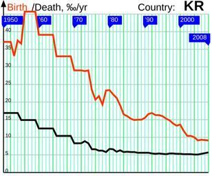 Keywords: BirthDeath 1950 KR.svg en The birth and death rates in the Republic of Korea own Incnis Mrsi 2009-07-13 public domain File RNI 1950 KR svg Disclaimer The author of this graph gives no warranty and accepts no responsibility for its factual accuracy This graph is nothing but a visualization of data from http //demoscope ru/weekly/ias/ias05 php tim 0 cou 16 terr 1 ind 26 Submit OK http //demoscope ru/weekly/ias/ias05 php tim 0 cou 16 terr 1 ind 1 Submit OK which may be incomplete or error-prone If you find an error please correct the data in a <path d ¦ /> tag adding some comments about your reliable source and upload the file over Demographics of the Republic of Korea Birth and death rates