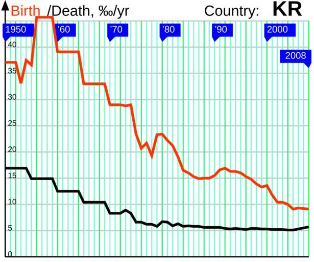 MAKE A MEME View Large Image BirthDeath 1950 KR.svg en The birth and death rates in the Republic of Korea own Incnis Mrsi 2009-07-13 public domain File RNI 1950 KR svg Disclaimer The author of this graph gives no warranty and accepts no responsibility for its factual ...