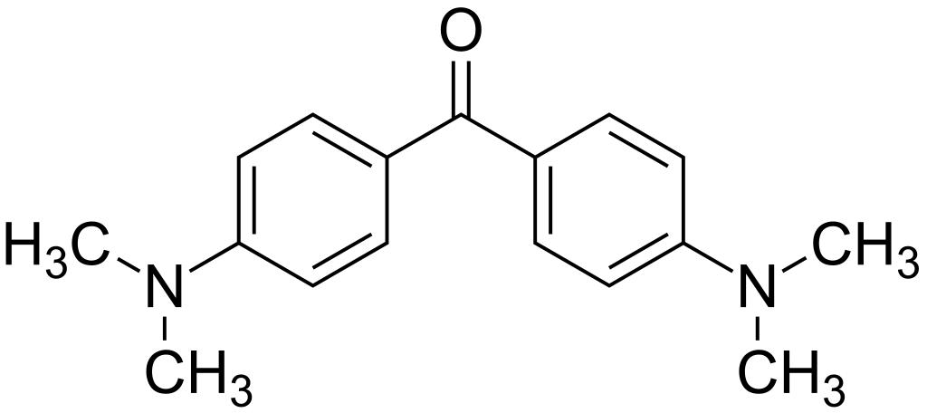 | Keywords: Bis(4-(dimethylamino)phenyl)methanone 200.svg validSVG Structure of bis 4- dimethylamino phenyl methanone Struktur von Own 2014-04-07 Emeldir <span class signature-talk >talk</span> Chemical structure verified https //upload wikimedia org/wikipedia/commons/d/db/Bis 284- 28dimethylamino 29phenyl 29methanone_200 svg 1S/C17H20N2O/c1-18 2 15-9-5-13 6-10-15 17 20 14-7-11-16 12-8-14 19 3 4/h5-12H 1-4H3 VVBLNCFGVYUYGU-UHFFFAOYSA-N 90-94-8 202-027-5 Synonyms <small> Tetramethyldiamino benzophenone 4 4'-Bis dimethylamino benzophenone 4 4'-bis Dimethylamino benzophenone 4 4'-Bis dimethylamino benzophenone 4 4'-tetramethyldiaminobenzophenone 4 44- Dimethylamino phenyl-methanone Bisp- N N-dimethylamino phenyl ketone di-p-dimethylaminophenyl ketone Methanone bis4- dimethylamino phenyl- 9CI Michler ketone michler ketone Michler's Ketone Michler's ketone MICHLERS KETONE TETRAMETHYLDIAMINOBENZOPHENONE N N N' N'-Tetramethyl-4 4'-diaminobenzophenone N N N' N'-Tetramethyl-4 4'-diaminobenzophenone N N N N'-Tetramethyl-4 4'-diaminobenzophenone NCI-C02006 p p'-Bis N N-dimethylamino benzophenone p p'-bis N N-dimethylamino benzophenone p p'-Michler's ketone p p'-michler's ketone Tetramethyl-p p'-diaminobenzophenone Tetramethyldiaminobenzophenone WLN 1N1 R D- 2V</small> PD-chem Benzophenones N-substituted anilides |