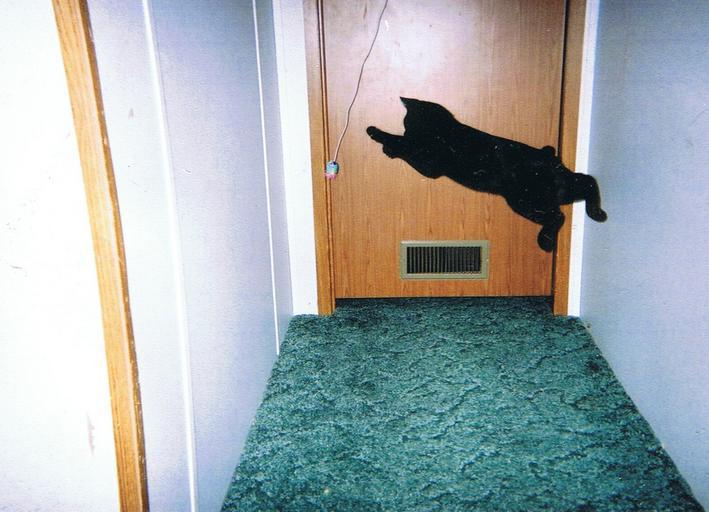 Keywords: Biscuit.The.Flying.Cat.jpg en Taken by Angela Hartley following the purchase of many torn mice on the cheap stretch-strings that could attach to the top of your door I took this photo approximately fours ago prior to my interest in photography with a cheap disposable camera I actually thought it turned out pretty good Biscuit the cat is still alive and well but living with my now ex-husband I miss her so but there's no doubt she's being well taken care of own user Aka emt332 Jumping cats Cat toys Playing cats Solid black cats Airborne jumping cats |