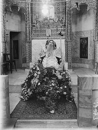Keywords: Bishop-Syria.jpg جثمان أحد الأساقفة في كنيسة في سورية بين عامي 1940 و 1946 ميلادية الصورة محفوظة في مكتبة الكونغرس الأمريكية Syrian bishop's remains funeral Corpse seated in church between 1940 and 1946 LOC-image matpc 00528 between 1940 1946 Eric and Edith Matson Photograph Collection Library of Congress Prints and Photographs Division Washington D C 20540 USA PD-Matson Churches in Syria People of Syria Funerals in Syria Post-mortem photography Funerals of clergy Wakes ceremonies |