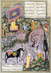 | Keywords: Bizhan Shahnameh Met 1970.301.42 n02.jpg Assessment Assessments 1 Bizhan receives an invitation through Manizheh's nurse folio from the Shahnameh Book of Kings of Shah Tahmasp Bijan reçoit une invitation par l'intermédiaire de la nourrice de Manijeh folio d'un manuscrit du Shahnameh Livre des rois ayant appartenu au shah Tahmasp ca 1525 1530 ink watercolor opaque silver gold paper cm 32 1 18 4 Institution Metropolitan Museum of Art Department of Islamic Art gallery 203 140009526 object history From Tabriz Iran Provenance Tabriz Iran credit line artwork-provenanceorcl gift Arthur A Houghton Jr 1970 accession number 1970 301 42 Marie-Lan Nguyen 2011 PD-old-100-1923 other versions Shah Tahmasp's Shahnameh Islamic paintings in the Metropolitan Museum of Art Human figuration in Islamic art |