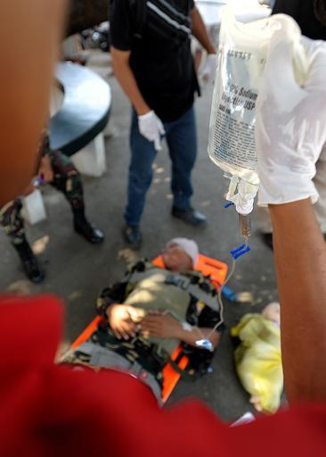| Keywords: BK 13 - AFP-US Army team helps sharpen skills of Philippine first responders 130405-N-VN372-345.jpg en Philippine provincial health workers simulate placing an IV in a head injury victim during a mass casualty exercise at the President Rama Magsaysay Memorial Hospital in the Iba Municipality The drill was a culminating event following a four-day first responders course conducted by a combined team of Philippine and U S army soldiers The training event was one of several similar subject matter expert exchanges cooperative health engagements and medical dental and veterinary community relations projects being performed by Combined/Joint Civil Military Operations Task Force units in support of exercise Balikatan 2013 Balikatan is an annual Philippine-U S bilateral exercise Humanitarian assistance and training activities enable the Philippine and American service members to build lasting relationships train together and provide assistance in communities where the need is the greatest U S Navy photo by Mass Communication Specialist 1st Class Chris Fahey/RELEASED 2013-04-05 Petty Officer 1st Class Chris Fahey https //www dvidshub net/image/903889 130405-N-VN372-345 2013-04-10 06 18 ZAMBALES PH PD-USGov-Military-Navy Balikatan 2013 Images from DoD uploaded by Fæ |