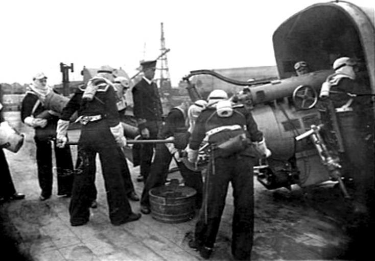 View Original:BL 6 inch Mk XI gun crew HMAS Sydney Portsmouth January 1919 AWM EN0167.jpg (420x293)