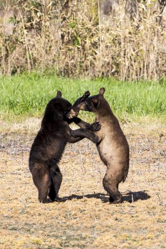 | Keywords: black bear blackbear bears north carolina northcarolina wildlife u. s. fish and wildlife service usfishandwildlifeservice national wildlife refuge nationalwildliferefuge national wildlife refuge system nationalwildliferefugesystem At Pocosin Lakes National Wildlife Refuge two young black bears go through a playful looking dance of dominance. Rolling, tumbling & standing on hind feet are all activities which are a part of a young bear's development. The refuge has one of the largest concentration of black bears in the southeast. Bears can look cute when playing, but you should always keep your distance and be cautious around them. Photo credit: Orsulak/USFWS At Pocosin Lakes National Wildlife Refuge two young black bears go through a playful looking dance of dominance. Rolling, tumbling & standing on hind feet are all activities which are a part of a young bear's development. The refuge has one of the largest concentration of black bears in the southeast. Bears can look cute when playing, but you should always keep your distance and be cautious around them. Photo credit: Orsulak/USFWS |