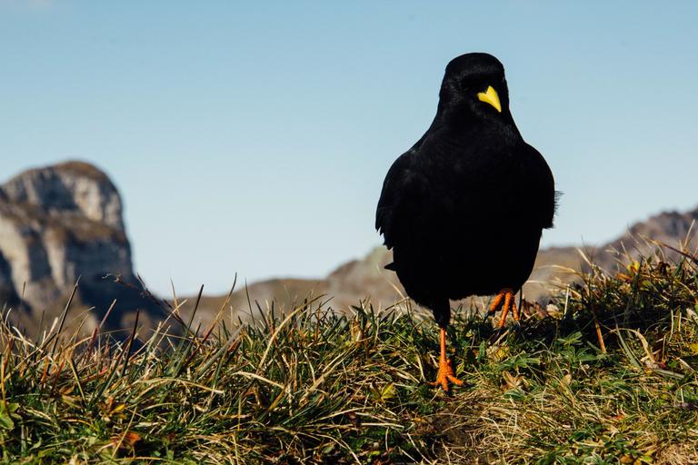 Keywords: black bird yellow beak black beak bird yellow wildlife wild looking outdoors