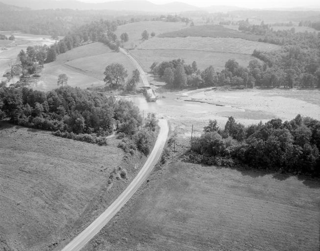 | Keywords: richmond va usa hurricane camille hurricanecamille flood flooding damage natural disaster naturaldisaster virginia richmond va usa virginiarichmondvausa blackandwhite monochrome outdoor road black and white This overhead view shows the missing section of bridge over Black Creek in Nelson County, about one mile west of Colleen. The negative sleeve identifies the location as Rt. 158, but this route was replaced by Rt. 56 between Colleen and the Piney River in recent years. No. 69-2185, Virginia Governor's Negative Collection, Library of Virginia. This overhead view shows the missing section of bridge over Black Creek in Nelson County, about one mile west of Colleen. The negative sleeve identifies the location as Rt. 158, but this route was replaced by Rt. 56 between Colleen and the Piney River in recent years. No. 69-2185, Virginia Governor's Negative Collection, Library of Virginia. |