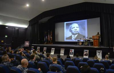Keywords: Black History Month observance 150226-N-GI544-057.jpg en 150226-N-GI544-057 PEARL HARBOR Feb 26 2015 Capt Stanley Keeve Jr commander of Joint Base Pearl Harbor-Hickam JBPHH speaks to service members during a Black History Month observance at Sharkey Theater JBPHH U S Navy photo by Mass Communication Specialist 2nd Class Laurie Dexter/Released 2015-02-26 Petty Officer 2nd Class Laurie Dexter https //www dvidshub net/image/1790074 150226-N-GI544-057 2015-02-27 12 51 PEARL HARBOR HI US PD-USGov-Military-Navy 2015 in Pearl Harbor Black History Month Images from DoD uploaded by Fæ |