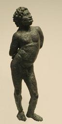 Keywords: Black slave Louvre Br361.jpg Black youth with hands bound behing his back Found in the Fayum near Memphis Egypt bronze 2nd “1st century BC Adolescent noir aux mains liées Statuette en bronze trouvée dans la région du Fayoum non loin de Memphis Égypte IIe ou Ier siècle av J -C H 13 2 cm 5 in Museum Louvre Department of Greek Etruscan and Roman Antiquities Sully first floor room 32 object history credit line Purchase 1892 accession number Br 361 Jastrow 2005 other versions Atelier graphique Ancient Greek bronze statuettes Hellenistic sculptures Ancient Egyptian art from Faiyum Slavery in ancient Greece Statues of nude standing boys Africans in ancient Greek art Greek antiquities in the Louvre - Room 32 Statues of people of Africa |