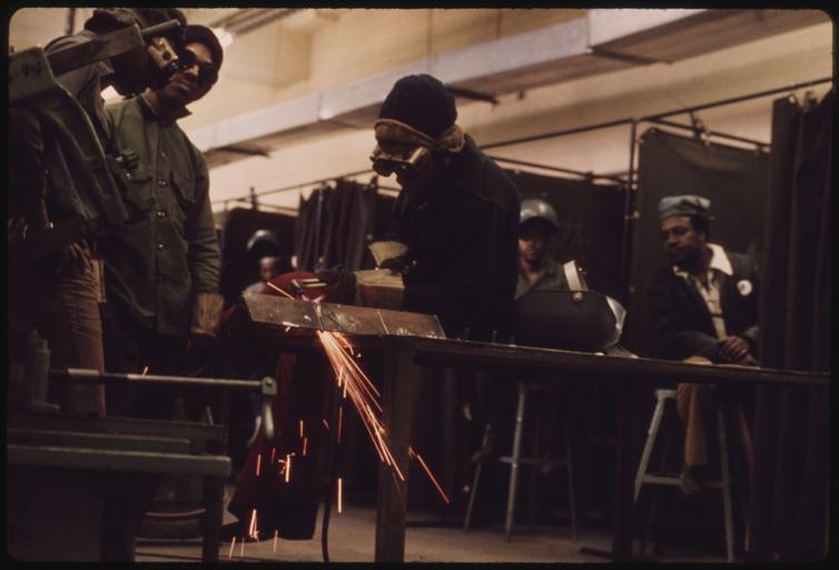 Keywords: BLACK STUDENT WELDERS WORK IN A MACHINE SHOP COURSE TAUGHT AT THE CHICAGO OPPORTUNITIES INDUSTRIALIZATION CENTER IN... - NARA - 556269.jpg Scope and content General notes 556269 Local identifier 412-DA-13817 Environmental Protection Agency 12/02/1970 - NARA-Author White John H 1945- Photographer 4002141 <br /> Chicago Cook county Illinois United States North and Central America inhabited place 4201352 41 85 -87 65 <br /> Still Picture Records Section Special Media Archives Services Division NWCS-S National Archives at College Park 8601 Adelphi Road College Park MD 20740-6001 10/1973 Record group Record Group 412 Records of the Environmental Protection Agency 1944 - 2006 Record group ARC 708 DOCUMERICA The Environmental Protection Agency's Program to Photographically Document Subjects of Environmental Concern compiled 1972 - 1977 Series ARC 542493 File unit File unit ARC Variant control numbers Agency-Assigned Identifier 231/17/013817<br /> NAIL Control Number NWDNS-412-DA-13817 Other versions <gallery> File BLACK_STUDENT_WELDERS_WORK_IN_A_MACHINE_SHOP_COURSE_TAUGHT_AT_THE_CHICAGO_OPPORTUNITIES_INDUSTRIALIZATION_CENTER_IN _-_NARA_-_556269 tif tif File BLACK_STUDENT_WELDERS_WORK_IN_A_MACHINE_SHOP_COURSE_TAUGHT_AT_THE_CHICAGO_OPPORTUNITIES_INDUSTRIALIZATION_CENTER_IN _-_NARA_-_556269 jpg jpg </gallery> NARA-cooperation PD-USGov 1973 in Chicago Welders |