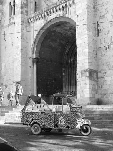 Keywords: black and white tricycle archway cathedral architecture building landmark city historic architecture design structure tourism design old aged