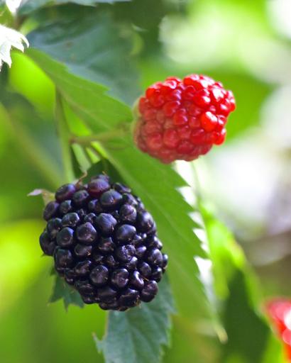 Keywords: blackberries ripe plant fruit juicy vine unripe food fresh colorful black red berry
