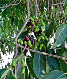Keywords: blackberry berries bunch syzigium cumini green blackberries seasonal india