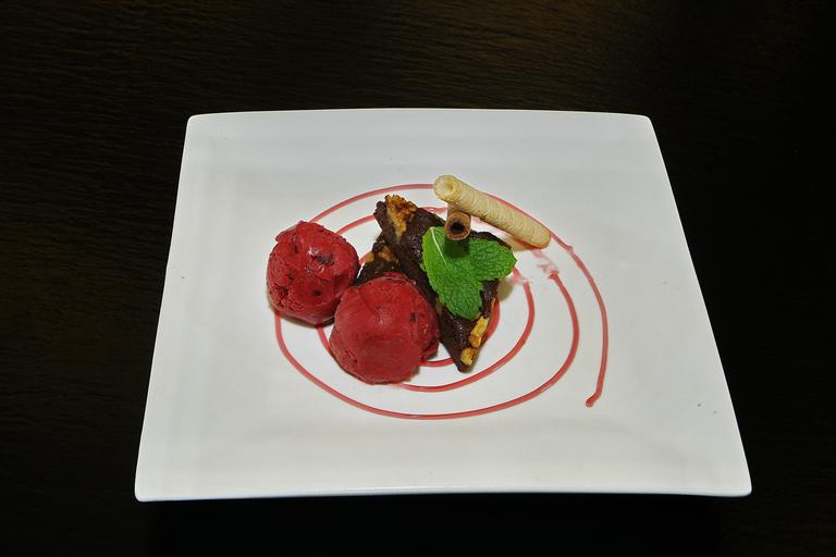 Keywords: blackcurrant sorbet ice cream dessert spearmint chocolate cake food dining refreshments comfort garnish sorbet
