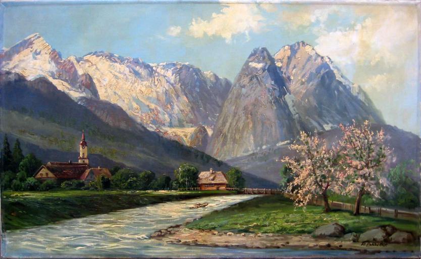 Keywords: Blaetter wetterstein.jpg Wettersteingebirge oil on canvas 100 x 61 cm repro from art book Albert Blaetter 1878-1935 Wetterstein Landscape paintings PD-old