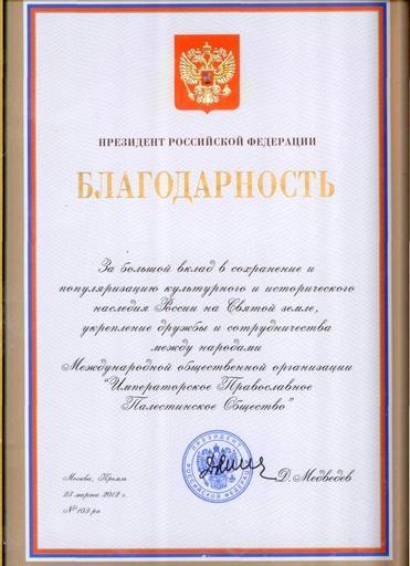 | Keywords: Blagodarnost IPPO.jpg ru Благода ность П езидента России Д А едведева Импе ато скому П авославному Палестинскому Общесту 2013-03-04 21 35 45 http //www ippo ru/obyavleniya/prezident-rossii-obyavil-blagodarnostj-imperatorskomu-pravoslavnomu-palestinskomu-obschestvu html Импе ато ское П авославное Палестинское Общество cc-zero Russian Orthodox Palestinian Society IPPO |