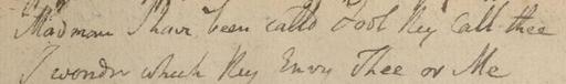 View Original: | Blake_manuscript_-_Notebook_1808_-_08_Madman_I_have_bell_calld_Foll_they_call_thee.jpg (1389x206) | |||