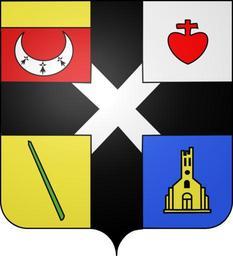 Keywords: Blason chauvé44.svg blazon of en Chauvé city Loire-Atlantique Chauvé Loire-Atlantique fr Écartelé au 1 de gueules au croissant d'argent à trois mouchetures d'hermine de sable et au chef d'or au 2 au cœur croiseté de gueules au 3 de sinople à une perche de sinople posée en bande au 4 d'azur à l'église au clocher brisé d'or ; sur le tout une croix de sable chargée en abîme d'un sautoir d'argent Koostia Projet Blasons Own Koostia v -Blasons other versions Quarterly shields Crosses sable Gules a chief Or 1 crescent in heraldry 3 ermine spots in heraldry Hearts in heraldry Churches in heraldry Saltires argent Chauvé Coats of arms of cities in Loire-Atlantique SVG coats of arms of France DEFAULTSORT Chauve |