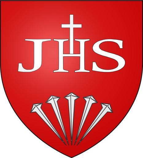 Keywords: Blason de la ville de Maillane (13).svg blazon of en city of Maillane Maillane Bouches-du-Rhône Maillane Bouches-du-Rhône fr De gueules au monogramme de Jesus Hominum Salvator JHS croiseté d'argent soutenu de cinq clous de la passion appointés du même it di rosso al monogramma di Jesus Hominum Salvator JHS d'argento sostenente una croce latina dello stesso accompagnato da cinque chiodi della passione pure d'argento appuntati in punta spax89 Projet Blasons Own spax89 v -Blasons other versions Note Jesus Hominum Salvator is actually a pseudo-etymology Maillane IHS in heraldry Coats of arms of cities in Bouches-du-Rhône SVG coats of arms of France DEFAULTSORT Maillane |
