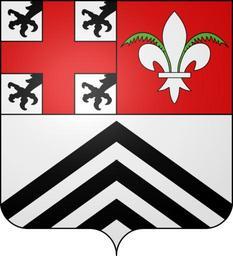 Keywords: Blason de la ville de Bettelainville (Moselle).svg blazon of en city of Bettelainville Bettelainville Moselle Bettelainville fr Coupé au 1 parti d'argent à une croix de gueules cantonnée de quatre serres de sable et de gueules à une fleur de lys d'argent d'où naissent deux palmes de sinople ; au 2 d'argent à trois chevrons de sable spax89 Projet Blasons Own spax89 v -Blasons other versions Bettelainville Coats of arms of cities in Moselle SVG coats of arms of France DEFAULTSORT Bettelainville |