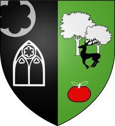 Keywords: Blason de la ville de Dilo (89).svg blazon of en city of Dilo Dilo Yonne Dilo Yonne fr Parti; au premier de sable a un clocher d'argent mouvant d'un buisson du même lui même mouvant de la partition accompagné en pointe d'un plan d'eau d'azur bordé de quatre arbres d'argent et chargé d'un oiseau en vol du champ; au second de sinople à un cerf de sable courant devant deux arbres d'argent accompagné en pointe d'une pomme de gueules tigée et feuillée d'argent les feuilles remplies du champ spax89 Projet Blasons Own spax89 v -Blasons other versions 1 apple in heraldry Arces-Dilo Deer in heraldry Coats of arms of cities in Yonne SVG coats of arms of France DEFAULTSORT Dilo |