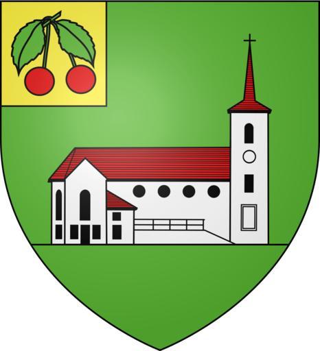 | Keywords: Blason de la ville de Sickert (68).svg blazon of en city of Sickert Sickert Haut-Rhin Sickert fr De sinople à la chapelle du lieu d'argent couverte de gueules le clocher à senestre dans le canton dextre du chef d'or à deux cerises de gueules tigées et feuillées de sinople spax89 Projet Blasons Own spax89 v -Blasons other versions Sickert 2 cherries in heraldry Coats of arms of cities in Haut-Rhin SVG coats of arms of France Vert shields DEFAULTSORT Sickert | ||||