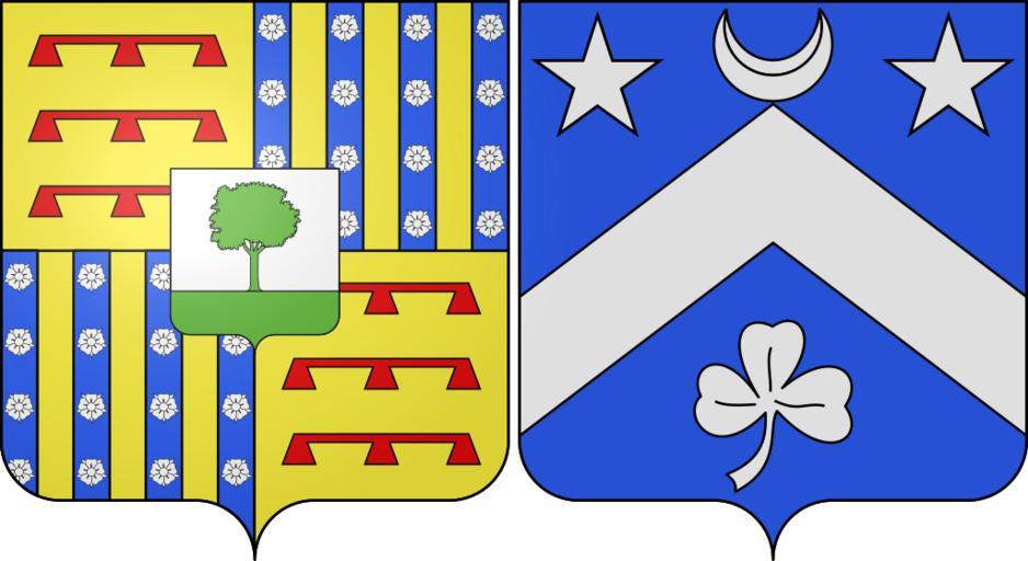Keywords: Blason de la ville d'Aujargues (30).svg blazon of en city of Aujargues Aujargues Gard Aujargues Gard fr Deux écus accolés 1 Ecartelé au premier et au quatrième d'or aux trois lambels de gueules l'un sur l'autre au deuxième et au troisième d'azur aux trois pals d'or les pals d'azur chargés chacun de quatre roses d'argent ; sur le tout d'argent au noyer terrassé de sinople 2 D'azur au chevron accompagné en chef d'un croissant accosté de deux étoiles et en pointe d'un trèfle le tout d'argent it due scudi accollati 1 inquartato nel 1º e 4º d'oro a tre lambelli di rosso l'uno sull'altro; nel 2º e 3º d'azzurro a tre pali d'oro con i pali d'azzurro caricati ciascuno di quattro rose d'argento; sultutto d'argento al noce terrazzato di verde 2 d'azzurro allo scaglione accompagnato in capo a un crescente accostato da due stelle e in punta da un trifoglio il tutto d'argento spax89 Projet Blasons Own spax89 v -Blasons other versions Aujargues 1 crescent argent in heraldry Two shields coupled in heraldry Coats of arms of cities in Gard SVG coats of arms of France Walnut trees in heraldry DEFAULTSORT Aujargues |